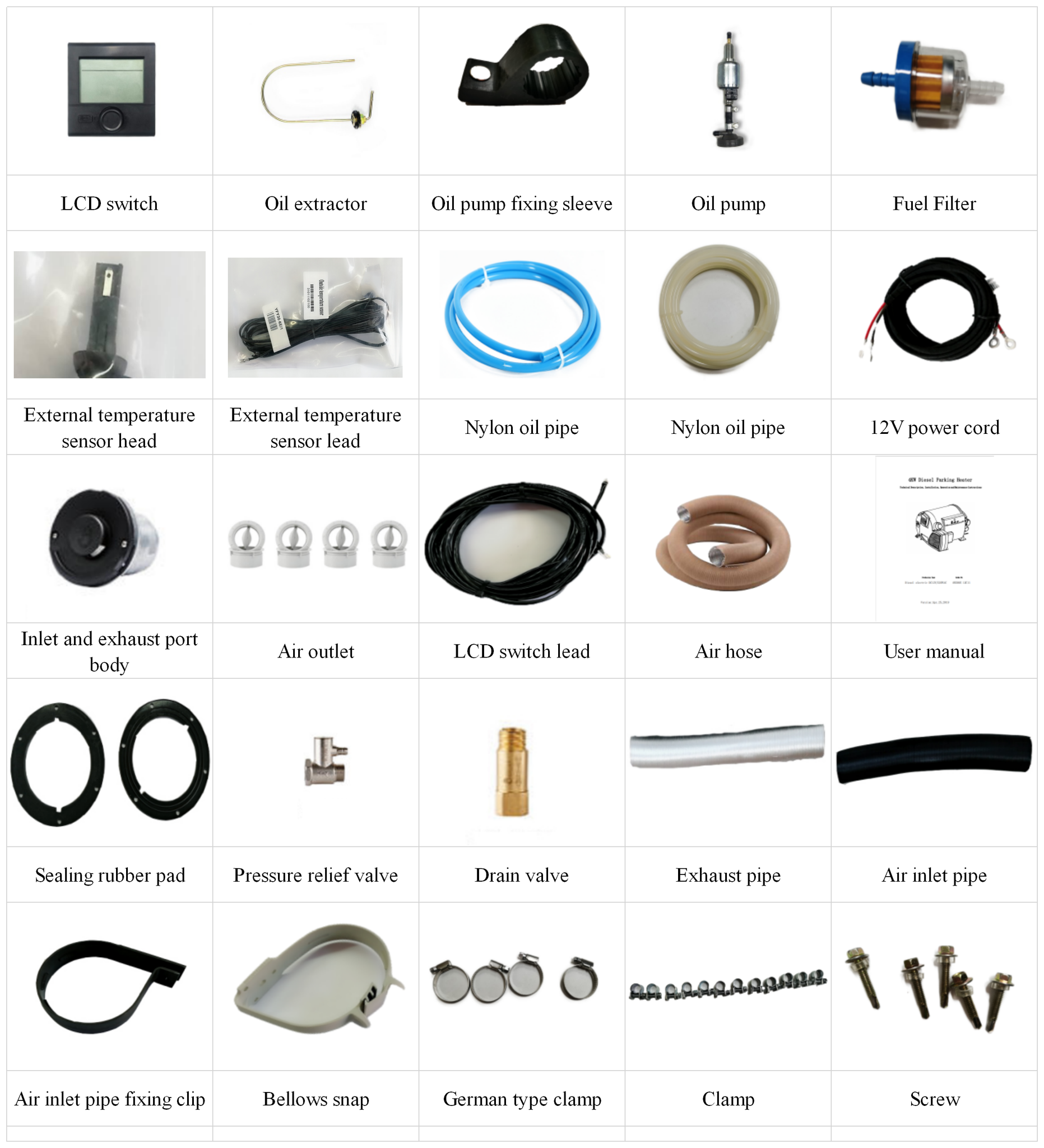 Some parts can be used in Truma, such as pipes, air outlet, hose clamps.heater house, fan impeller and so on.