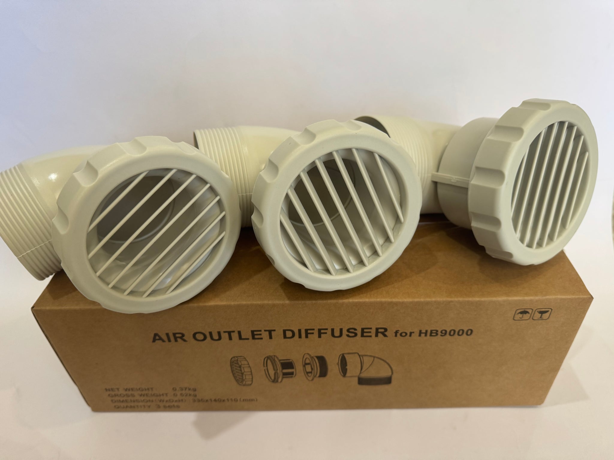 The Air outlet for 60mm ducting that is used with Finch HB9000 or Truma Saphir air conditioner.